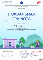 Учащиеся 3 А класса МАОУ "ЦО" "Школа РОста" с 23 сентября по 26 октября приняли 100% в олимпиаде "Безопасные дороги!